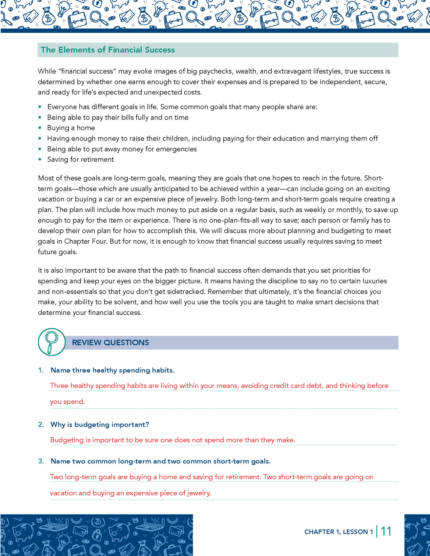 Financial literacy classes lay a foundation for junior high students to build strong money habits and empower them with basic knowledge. The content in this course will provide the necessary materials to introduce in this course will provide the necessary materials to introduce you students to concepts such as financial needs and wants, budgeting, banking, debt, investments, and more.